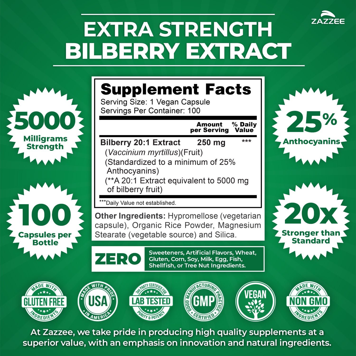 All Ingredients, Including The Capsule, Are 100% Vegan. Our Extra Strength Bilberry Extract Does Not Contain Any Sweeteners, Artificial Flavors, Wheat, Corn, Gluten, Soy, Milk, Egg, Fish, Shellfish, Or Tree Nut Ingredients. Enjoy The Amazing Benefits Of Our Potent Bilberry Extract Without Worrying About What Else Might Be Hiding In Each Capsule!