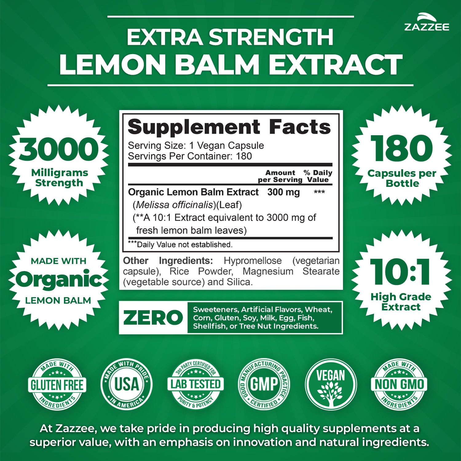 Any Lemon Balm that is not organic can be contaminated and toxic to your body. With Zazzee Naturals Organic Lemon Balm Extract, you can be sure your Lemon Balm is organic, all-natural, vegan, and non-GMO.