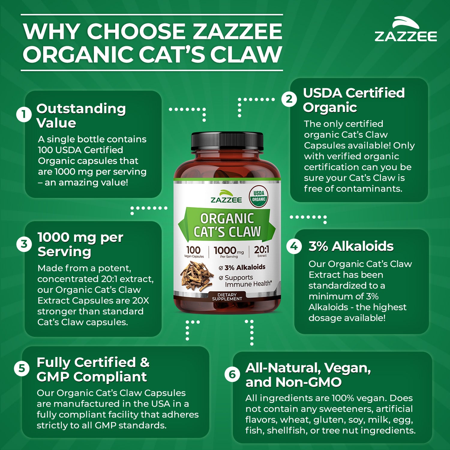 Zazzee's Cat's claw supplement has lots of great benefits